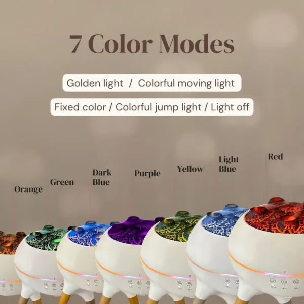 Create the perfect ambiance with 7 vibrant LED colors and 4 dynamic lighting modes. Whether you need a calming glow for bedtime or a lively atmosphere for gatherings, this LED diffuser humidifier adapts to your mood with ease.