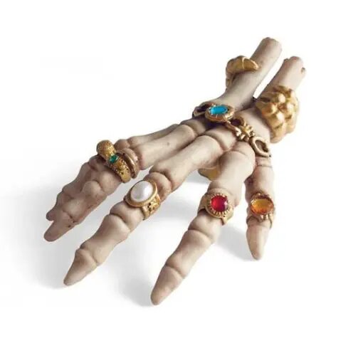- Jeweled Skeleton Hand: 7-1/2″L x 4-1/2″W x 3-1/2″H