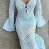 Kayleigh Crochet Fishtail Flare Sleeve Maxi Dress