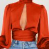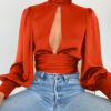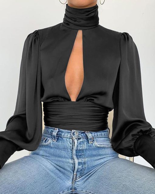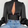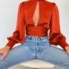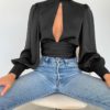 KEYHOLE BACKLESS LONG SLEEVE TOP