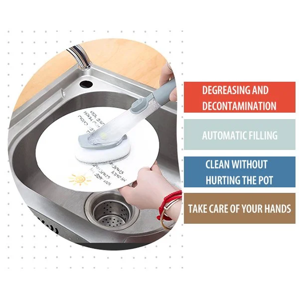 2 In1 Long Handle Kitchen Cleaning Brush with Removable Brush Sponge Dispenser Kitchen Sink Scrubber Dish Washing Brush Tool