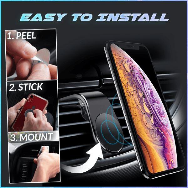 Simply peel the magnet that comes with the product and stick it onto your phone case or your phone, and done! Produces an intensive force of attraction that can hold any smartphone, including Android, Apple, Blackberry, and Microsoft devices.