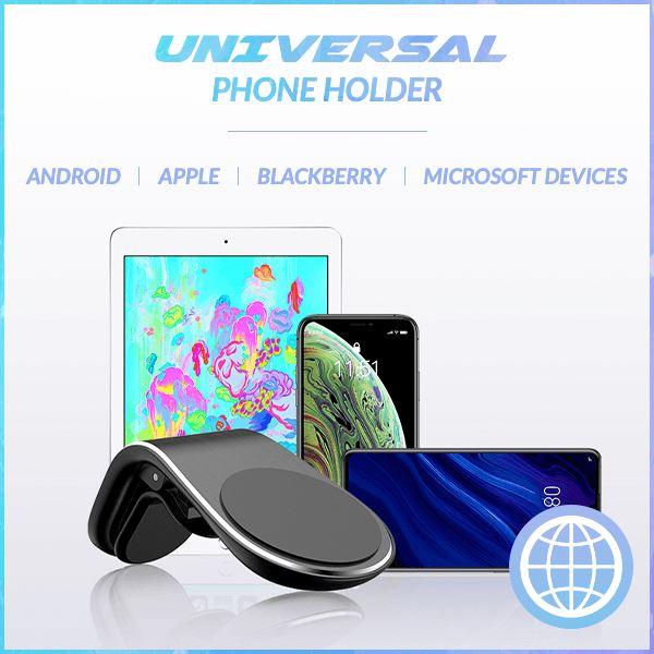 Produces an intensive force of attraction that can hold any smartphone, including Android, Apple, Blackberry, and Microsoft devices.