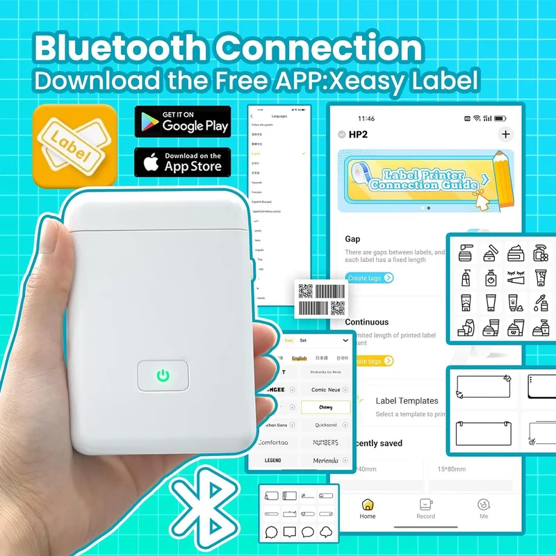 • Bluetooth Connectivity: Mini wireless bluetooth label printer for Convenient & Fast printing, supports iOS & Android, and print quickly and easily without wires.