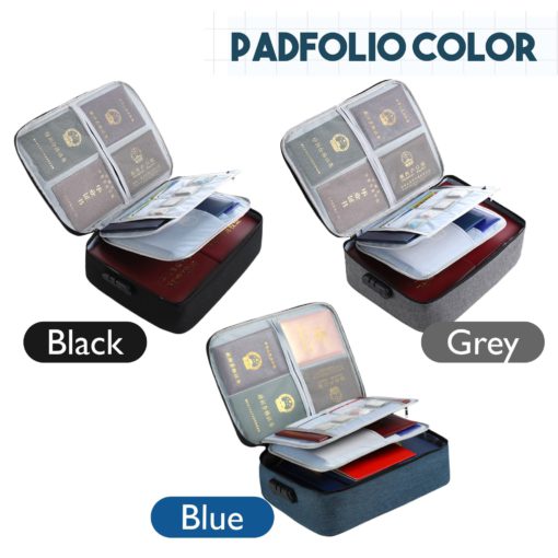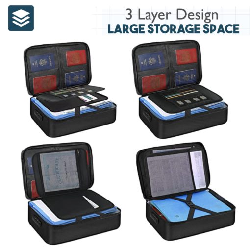 Large fireproof file bag has 3 layer of design.This includes 4 passport mesh bags, 12 card slots, 4 U Disk pockets, 7 folder layers and one main pocket with a large space. Great way to organize your files easy for you to find whatever files you looking for quickly.