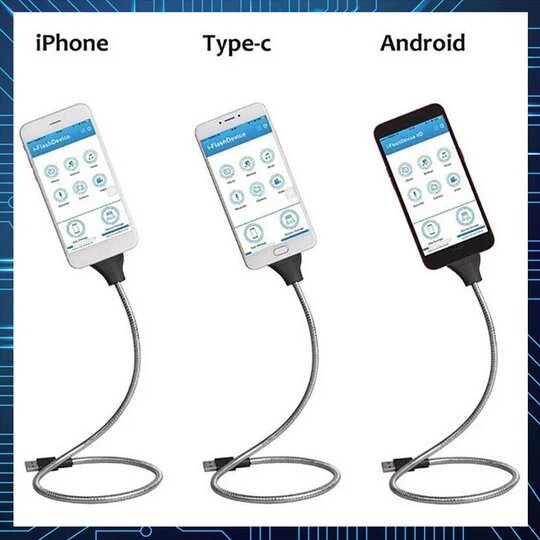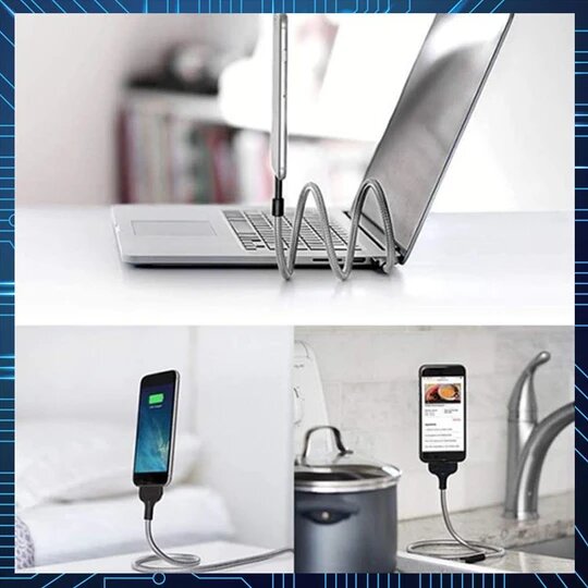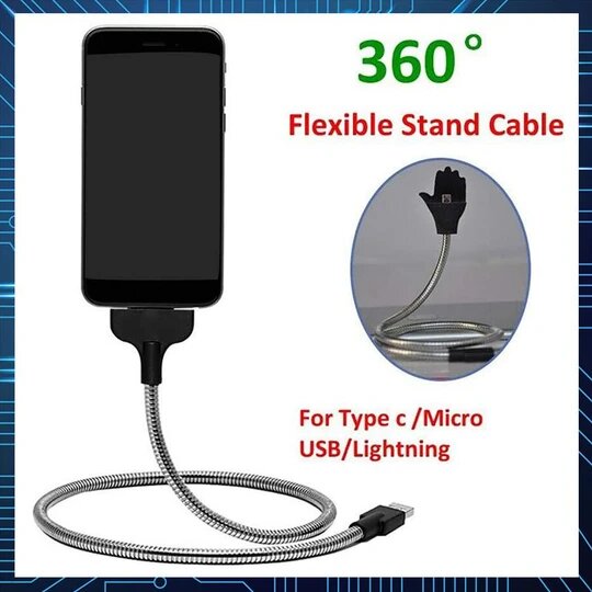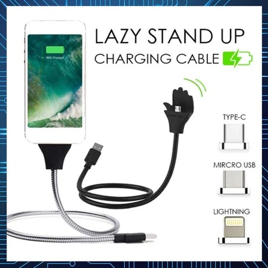 - 3in1 cable that works as a gadget stand, charger, and data transmitter.