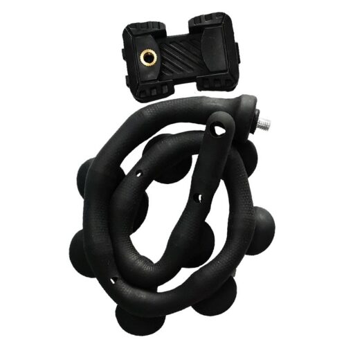Go hands-free with this compact and adjustable phone holder. With a silicone body and ten suction cups.Set your phone up anywhere and everywhere!