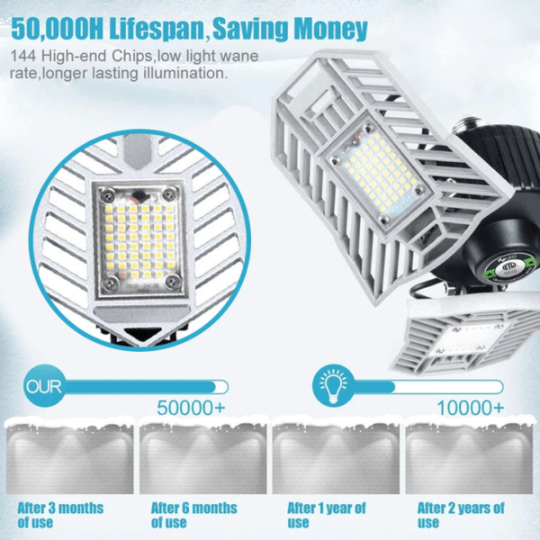 LED Flexible Lamp is a LATEST INVENTION that has a THREE WING PART that is composed of total of 144 pcs of LED LIGHTS. It has an ADJUSTABLE ANGLE and a 270° WIDER ANGLE COVERAGE. This lamp is 3.8 TIMES BRIGHTER and has 50000 HOURS of SERVICE LIFE compared to other ordinary LED bulbs.