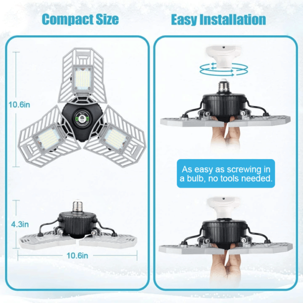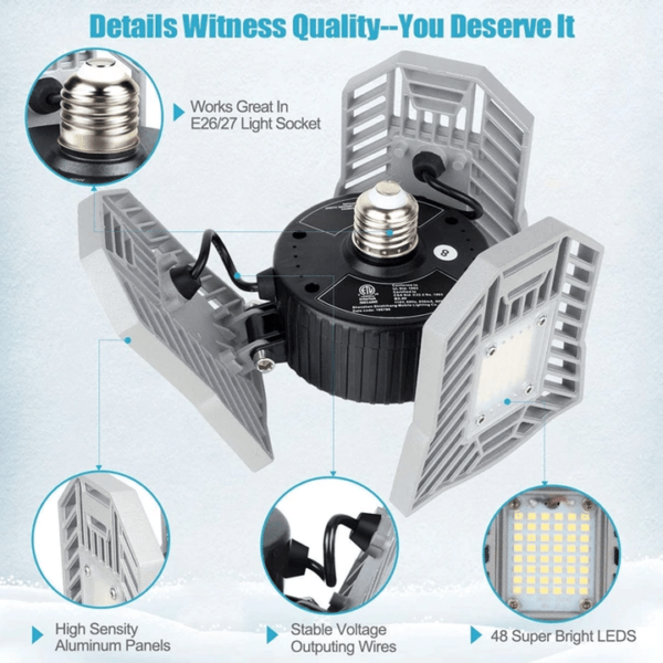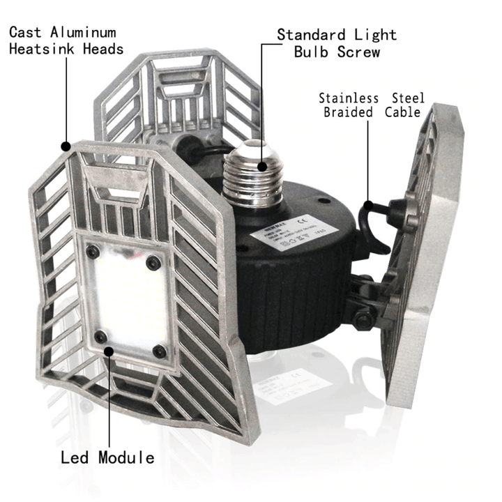LED Flexible Lamp FEATURES an ALUMINUM ALLOY housing which is HEAT DISSIPATED, HIGH-TEMPERATURE RESISTANT, and CORROSION RESISTANT. It is FLEXIBLE as it can be FOLDED up to 90°. It is PERFECT to use in the GARAGE, WAREHOUSE, BASEMENT, WORKSHOP, etc.