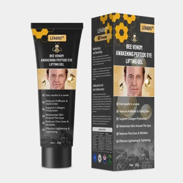 LENARO™ Bee Venom Awakening Peptide Eye Lifting Gel lifts, firms, and hydrates the skin around the eyes, reducing wrinkles and puffiness with bee venom and other active ingredients.