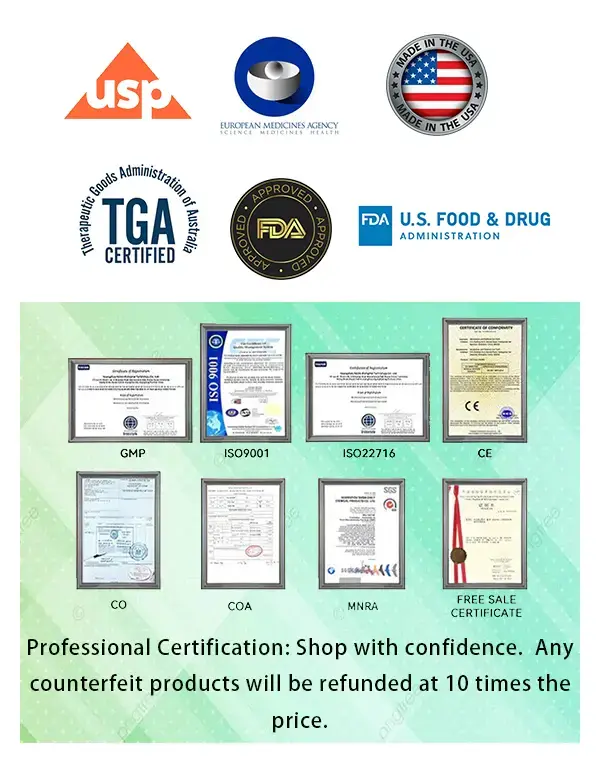 NAD&NMN: NAD & NMN boost mitochondrial energy metabolism, enhance cellular repair, and accelerate fat burning. They also delay aging, reduce free radical damage, and increase averall vitality.