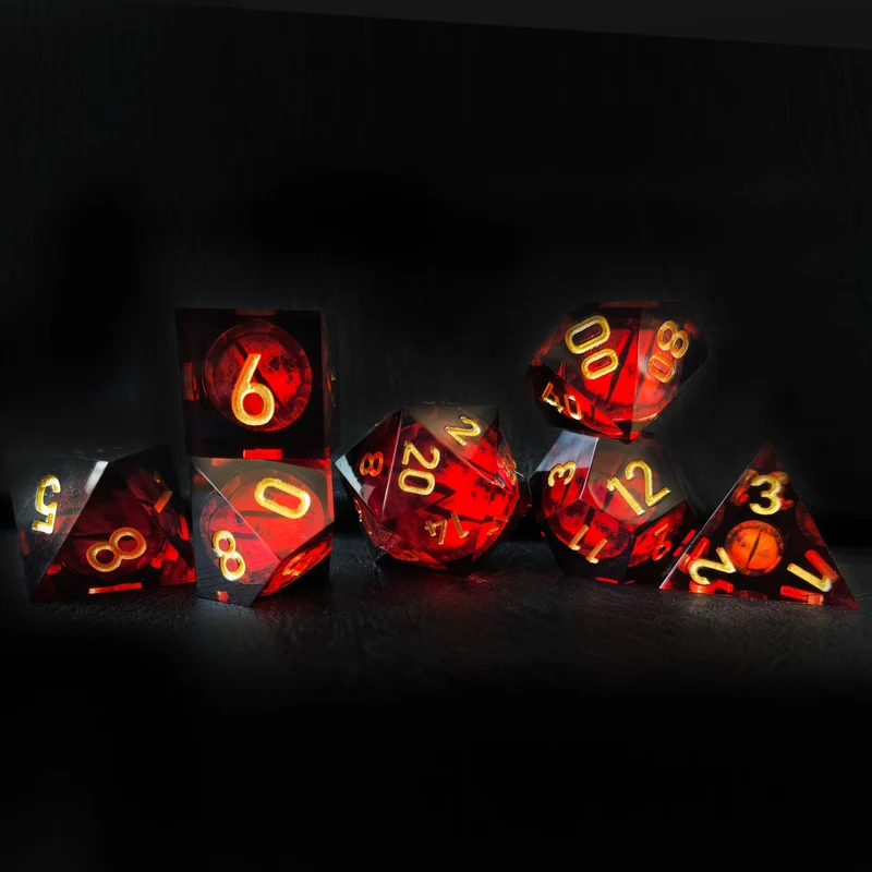 These dice feature sharp edges and are made for TTRPGs. They make a great dice set for any collector. Makes a great gift for a friend, fellow player, or dungeon master. These are super unique!