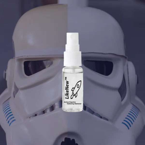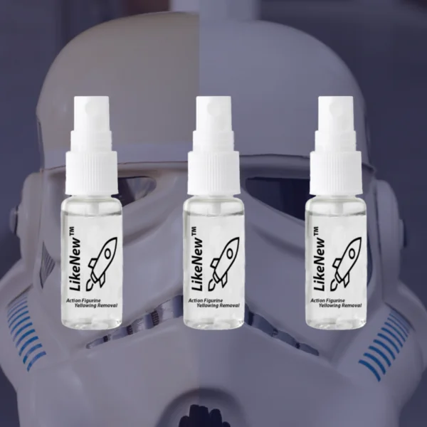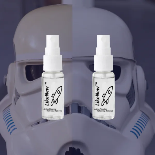 Introducing this new advance formulation, LikeNew Action Figure YellowRemover to give back the gleaming new look of your precious action figures! All it takes is a spray and a wipe to clean away the yellow stain.