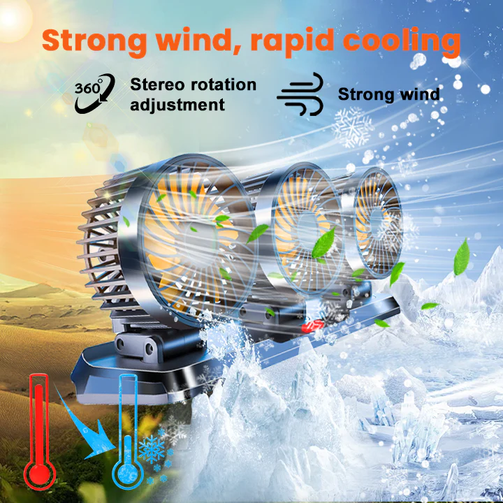 The LIMETOW™ Powerful Freezing Fan is a revolutionary product that generates a strong cooling effect for the entire vehicle, featuring an incredible energy-efficient output and a multi-angle setting for optimal cooling.
