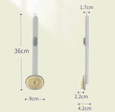 Long Handle Bath Brush for Exfoliating, Detachable Natural Bristle Back Scrubber.