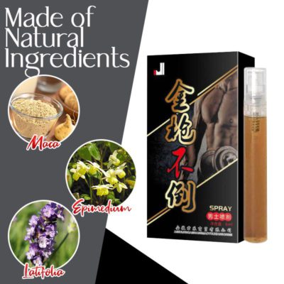 This MasculineSpray is SPECIALLY FORMULATED with an ALL-NATURAL INGREDIENTS such as Maca, Latifolia, and Epimedium that are POWERFUL KEY INGRIDIENTS to HELP MEN LAST LONGER in BED. It IMPROVES the SIZE of the LowerShaft and CONTROLS its SENSATION to DELAY the PASSIONATE RELEASE!