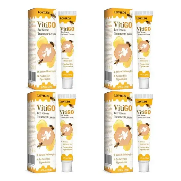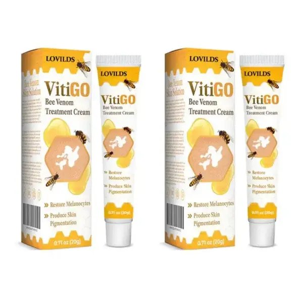 LOVILDS™ BeeVenom Vitiligo Treatment Cream helps treat vitiligo by using bee venom to restore skin color, promote skin healing, and even out the skin tone.