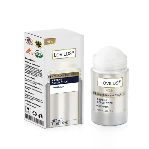 The LOVILDS® Collagen Peptides FIRMING SERUM STICK is an effective solution for diminishing visible signs of aging and wrinkles, resulting in a rejuvenated skin appearance within a span of 3-5 weeks.