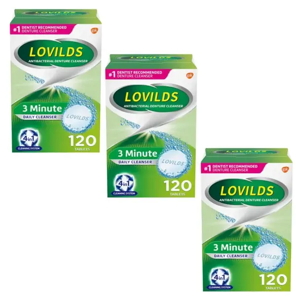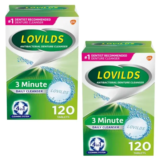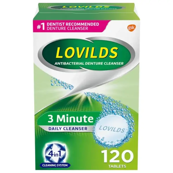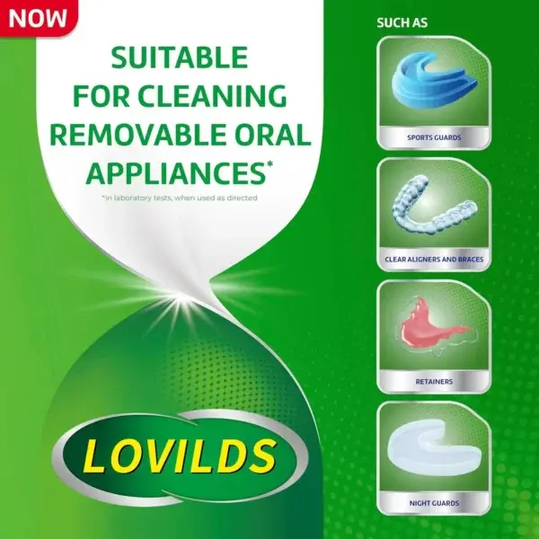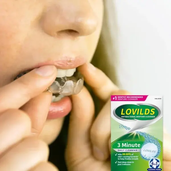 LOVILDS Denture Cleaning Tablets clean your dentures in just 3 minutes, removing stains, odors, and bacteria, keeping them fresh, comfortable, and easy to maintain.