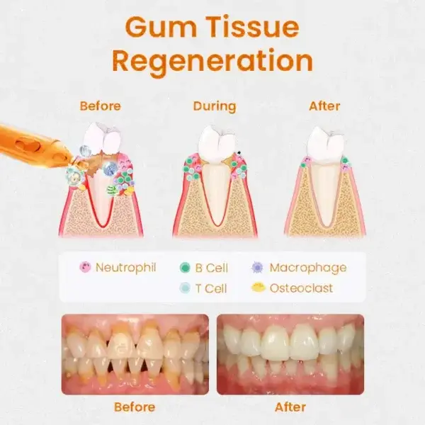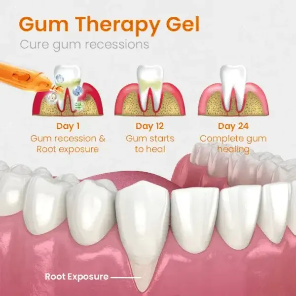 Strengthening Gum Attachment: By promoting cellular regeneration and collagen production, the gel helps restore the proper gum attachment, preventing further gum recession and enhancing overall gum health.