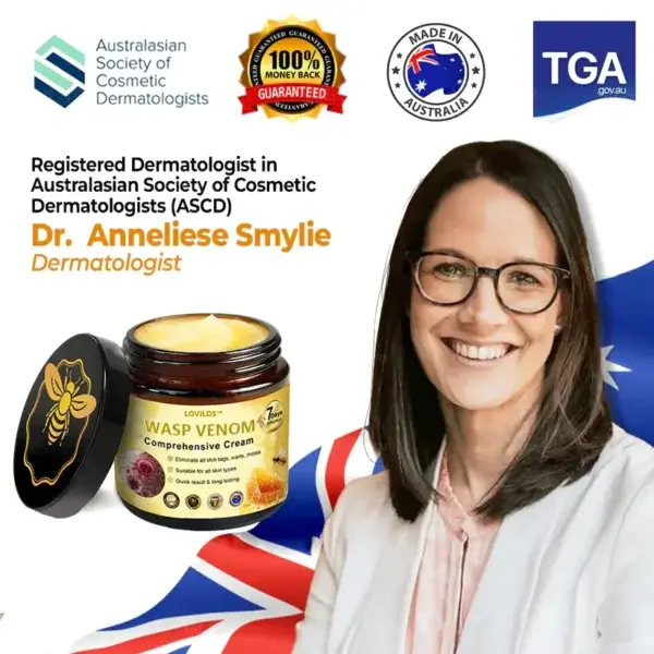 “As a dermatologist, I’ve always been passionate about finding effective, natural solutions for skin problems. After extensive research and testing with my lab team, and clinical trials involving over 2,000 participants, I discovered that Wasp venom is a powerful natural ingredient for addressing a wide range of skin concerns. This led me to create the LOVILDS™ Wasp venom Comprehensive Cream—an all-in-one solution designed to naturally and effectively relieve multiple skin issues with precision.” – Dr. Kylea Allora, MD. Dermatologist
