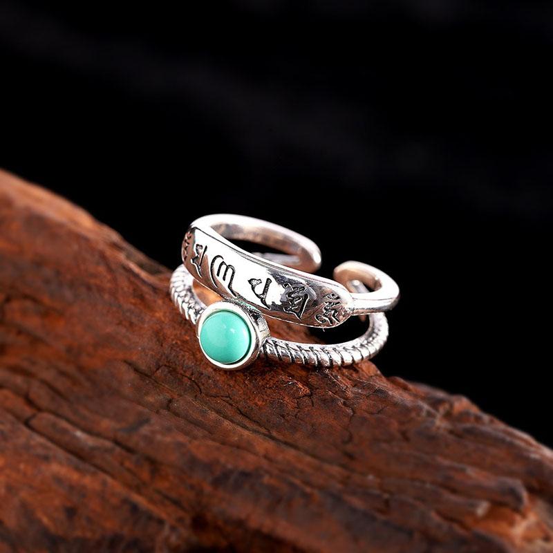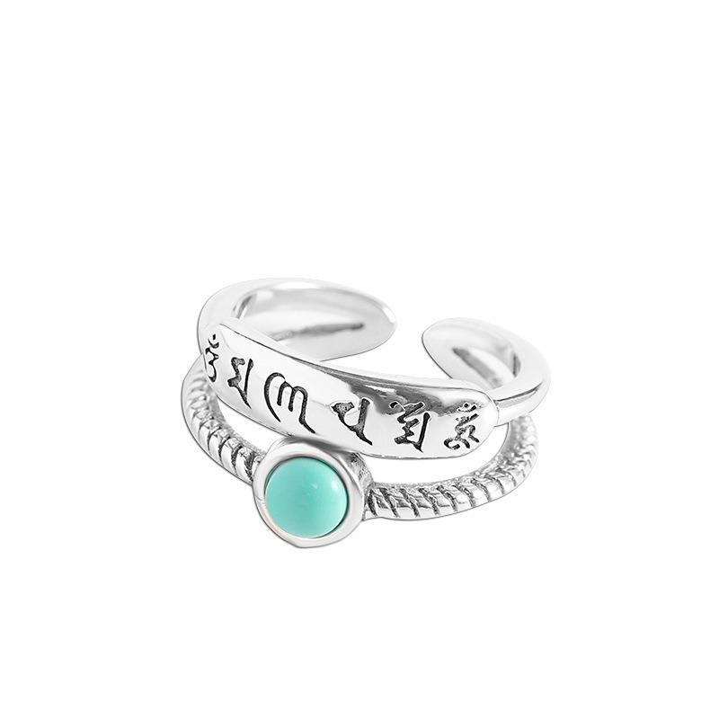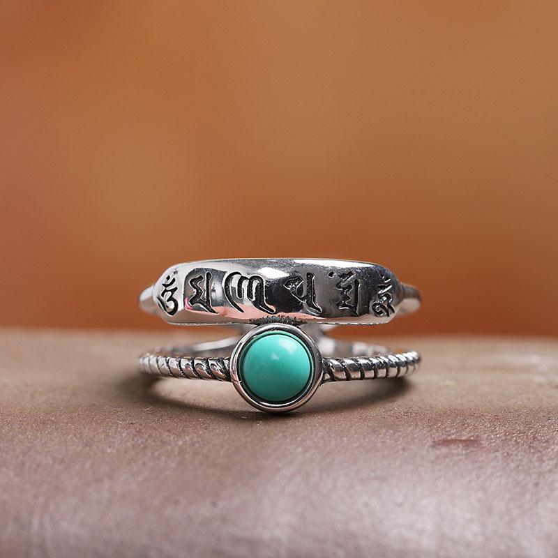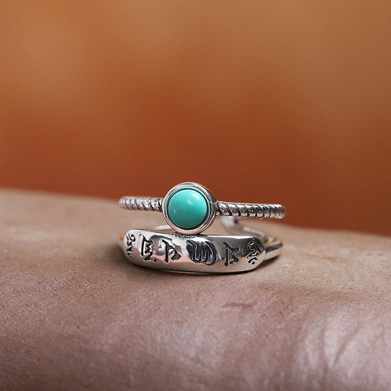 Lucky Turquoise Six-Character Mantra Ring