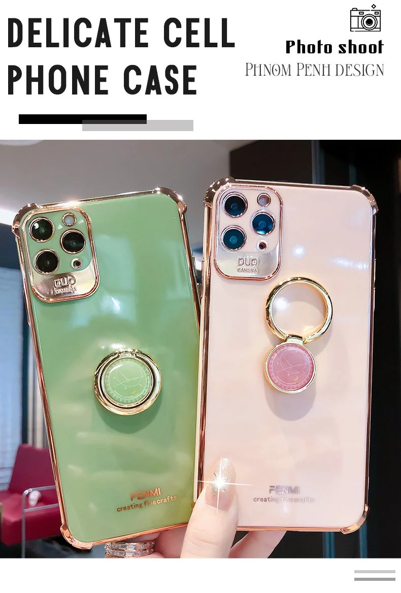 Luxury Electroplated Gold Plating Glitter Case with Ring Holder For iPhone