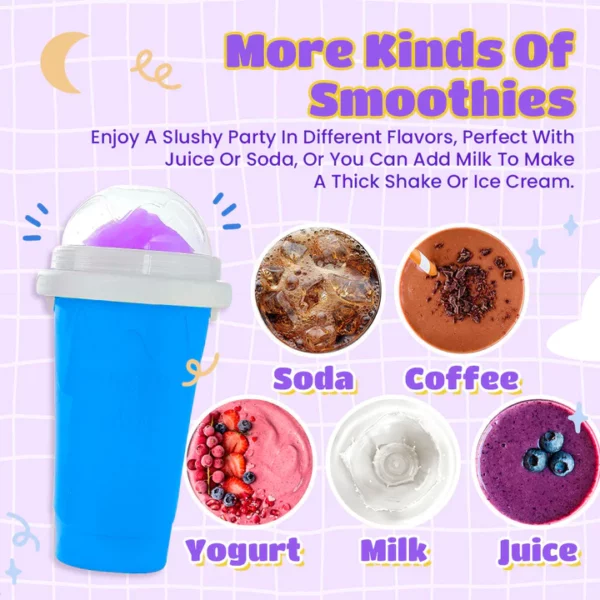 - EASY TO USE: Simply pour any drink of your choice, squeeze it, then you can taste the delicious smoothie! Easy to make, you will have fun making slushies. Experiment with different flavors and tastes to make your favorite slushie.