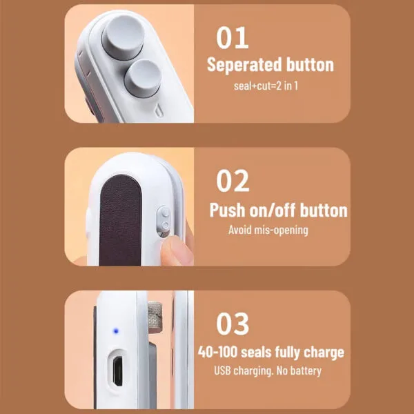 - USB Rechargeable: The built-in rechargeable battery is eco-friendly, and the sealer comes with a convenient USB charger.