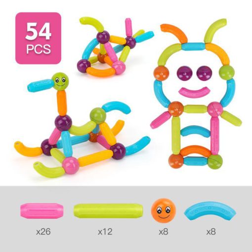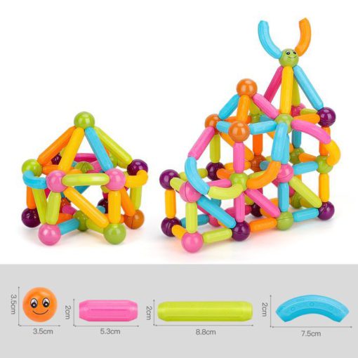 - ★ Limitless Possibilities for Countless of Models ★ Educational Magnet Building Sticks & Balls Kit gives your children the experience they deserve – with 44/54/65/74 pieces in a variety of shapes, your child can choose between curved & straight shapes in different lengths, develop their creativity and plan intricate designs with our dazzling PASTEL COLORS, that ignite the imagination and give an artistic touch to every model, turning every day to a party with the balloon-like style of the magnets (Attached instructions)