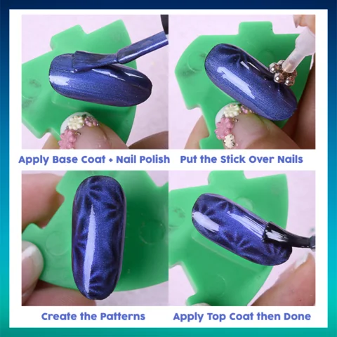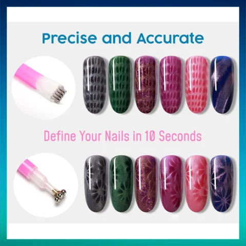 The kit comes with a dual-head magnetic stick that features 2 shapes for you to define your nails with more distinctive vibes than ordinary cat eye effect. The flower side creates patterns like flowers, dots, swirls , while the comb side creates stripes, waves and ombre touches . All you need is just 10 seconds to unleash the infinite possibilities.