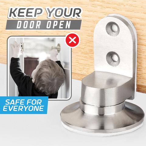 The magnet is strong enough to comfortably hold your door open. With the magnetic base plate, stop the door at the place you want, keep the door open.