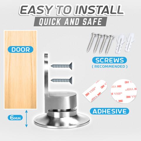 Have you met this trouble? A slight breeze would come through and slam the doors closed, also the naughty pets and kids will shut the door roughly. The Magnetic Door Holder is a good solution to keep a regular interior / exterior door open. Perfect for the windy area to keep air flow in the house without the inevitable heavy slamming door. This Magnetic Door Holder has a compact shape that conforms to the ground and doesn’t take up space at the same time, it will not affect daily cleaning, and children are not easy to trip over. The magnet is strong enough to comfortably hold your door open. With the magnetic base plate, stop the door at the place you want, keep the door open. The modern style invisible Magnetic Door Holder is very suitable for the doors of your living room, bedroom, bathroom, hotel, office, etc. Self-adhesive provides added strength and durability, and sticks securely to protect doors and floors from damage. There are also screw holes for mounting drilling holes. Screws are recommended for stability and durability. It is made of 304 stainless steel, which is durable and resistant to rust. The heavy duty doorstop has been tested 50,000 times and has a longer service life than other doorstops.