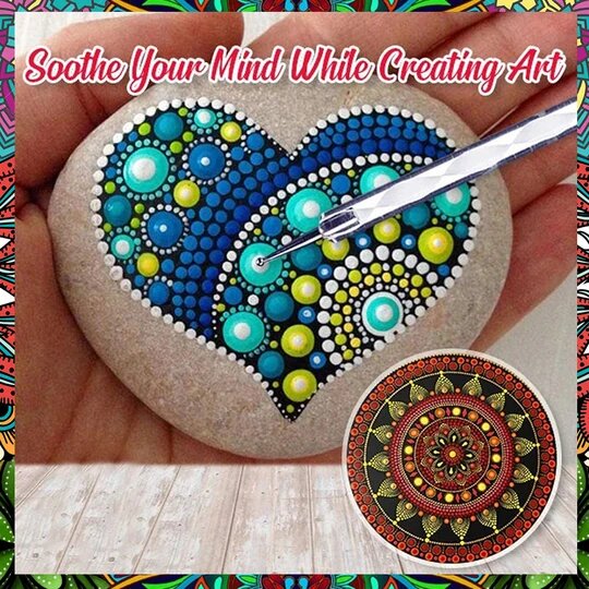 This is an INNOVATIVE SET of DOTTING TOOLS that EASILY and INSTANTLY HELPS you to CREATE ENDLESS MANDALA ART. It is made of SUPER LIGHTWEIGHT PLASTIC material that ALLOWS you to PAINT DOTS EFFORTLESSLY for HOURS. It’s ENDS are STAINLESS STEEL making it SAFE as it is SHARPLESS, STAIN-PROOF and RUST PROOF.