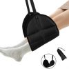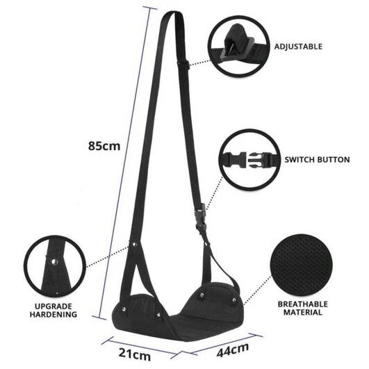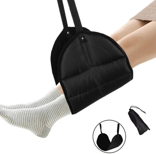 - easy to use – simply hang it on the arms of the tray table and place your feet in the footrest