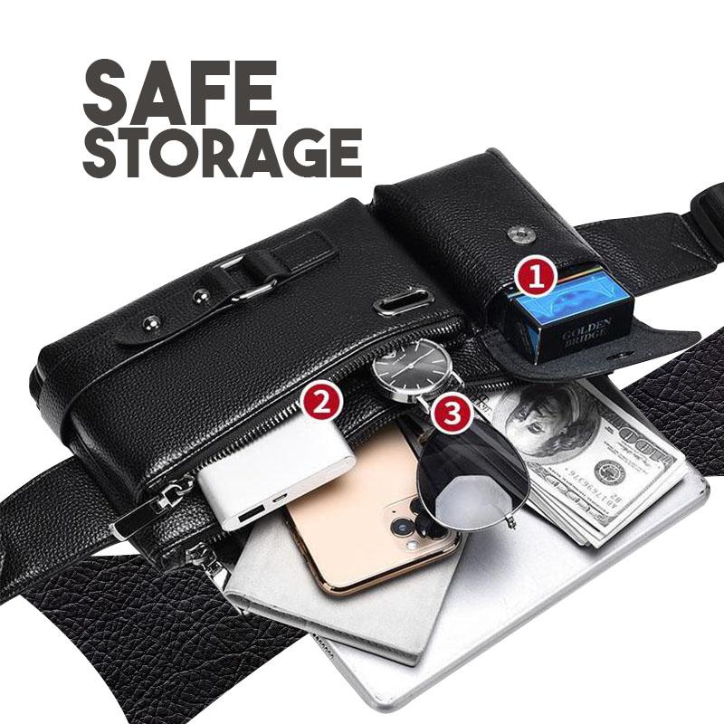 Men’s LeatherStylish Sling Bag is a FASHIONABLE MINI BAG that is DESIGNED with MULTIPLE COMPARTMENTS for a SLEEK and CONVENIENT STORAGE.