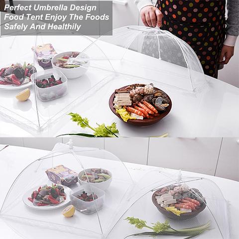 Mesh Food Covers, keep flying insects off your food when entertaining outside.Fine nylon mesh screen and extra lace around the bottom ensure your food and beverages are safe from bugs without affecting the taste.
