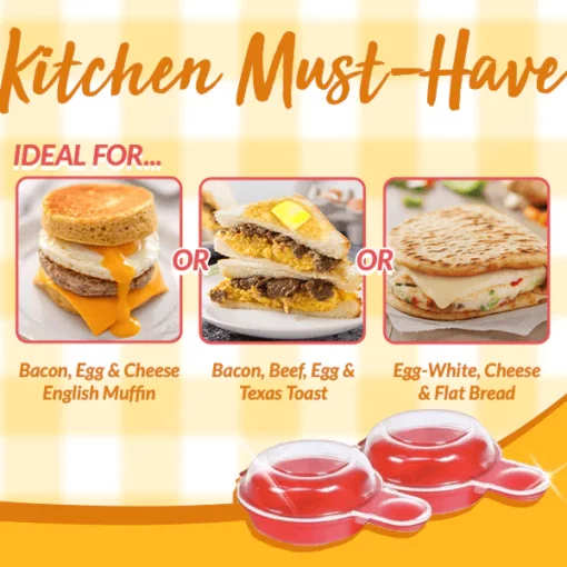 Cook meals faster and easier, perfect for preparing poached and scrambled eggs, omelets, and egg muffins. With a perfect round egg, fits English muffins & bagels perfectly!
