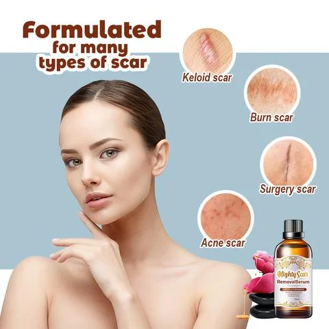 Mighty Scar Removal Serum is SAFE and NON-TOXIC to ANY SKIN TYPES. It is FAST ACTING and GUARANTEED to HAVE VISIBLE RESULTS in just WEEKS. It is SUITABLE for DIFFERENT TYPE of SCARS such as Hypertrophic Scars; Pregnancy Stretch Marks; Acne Scars; Keloid Scars; Sunken Scars. Also, for other scars caused by Surgery, Burns, Dermatitis, Cosmetics, Erosion of the skin due to infection or chemicals, frost and dryness.