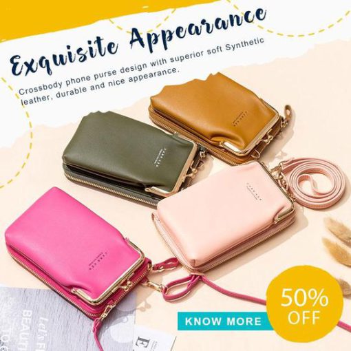 Crossbody phone purse design with superior soft Synthetic leather, durable and nice appearance.