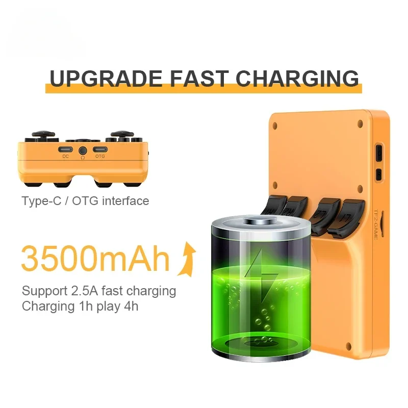 With a 3500mAh lithium battery, you can have up to 8 hours game time from just 2 hours charge with our USB C charging cable.