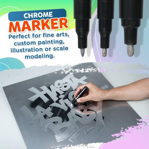 - Mirror Chrome Finish – Writes with high gloss ink that dries in a mirror chrome finish.