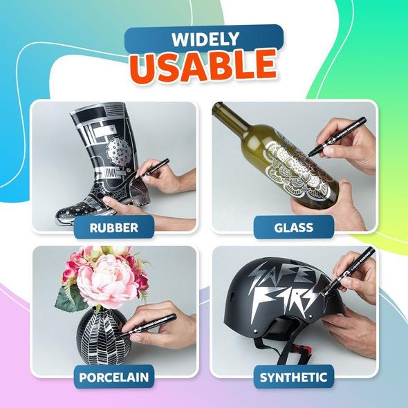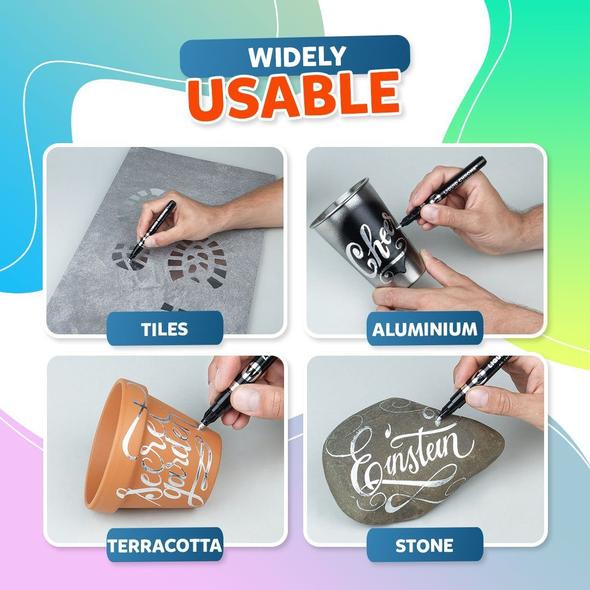 Ink flows smoothly with no stops, leaks, or bleeding to keep your work pristine. Its long-lasting formula is scratch-proof, UV-resistant, and weather-resistant. With different pen tip sizes available, it’s widely usable on various projects and surfaces.