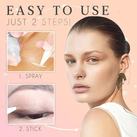 Now you could have stunning double lid with just spraying and sticking. With its refined lace design, it seamlessly blends with any skin tone for a completely invisible look. Have them all day long as its long-lasting adhesion is water- and swear-proof. You can use it on or under any makeup without ruining your look. Time to have your attractive eyes easily from now on!