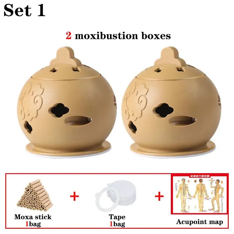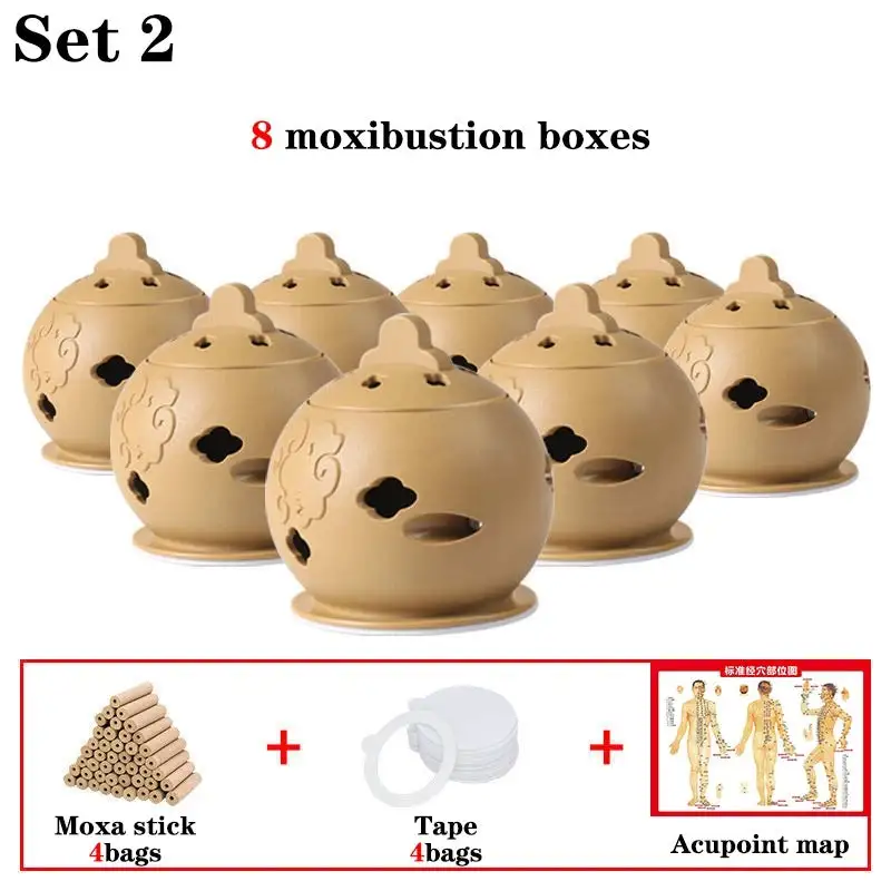 - Package includes: 8 x moxibustion box, 100 x moxa corn, 100 x sponge stickers