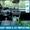 Safe on all interior surfaces including steering wheels, stereos, dashboards, door panels, center consoles and more. - Keep your car fresh