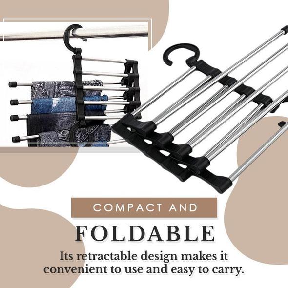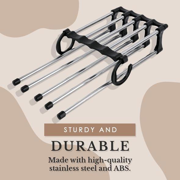 - Space-saving design – Unique hanger with 5 layers to hang steadily or vertically with its two hooks to hold up lots of clothing at once for a tidier closet.