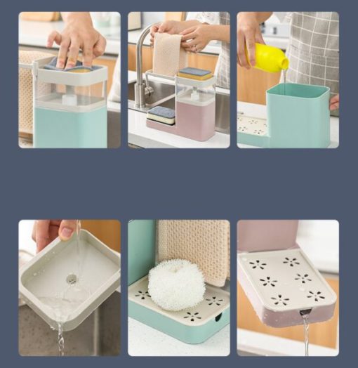 ALL-IN-ONE CONVENIENCE: Multifunctional Manual Press Soap Box features a dish towel hanger, soap pump, sponge caddy, and a drain rack. The 4-in-1 design keeps your sink organized making your washing experience as easy.