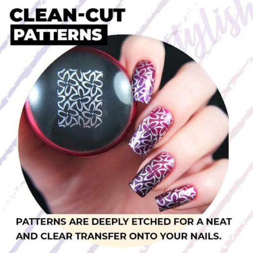 - Clean-Cut Patterns – Patterns are deeply etched for a neat and clear transfer onto your nails.