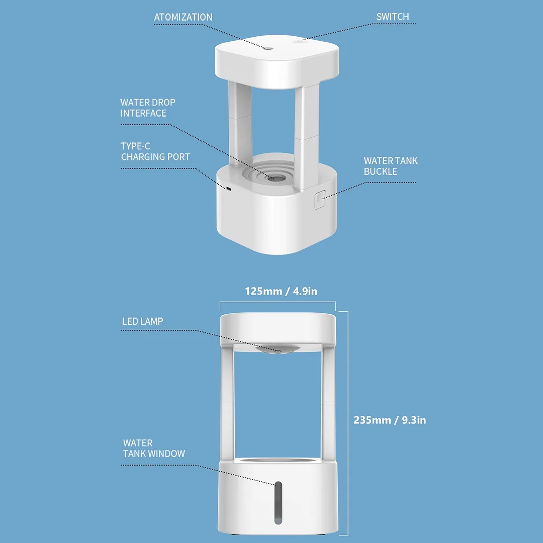 New Water Droplet Reverse Flow Atomization Anti-Gravity Humidifie